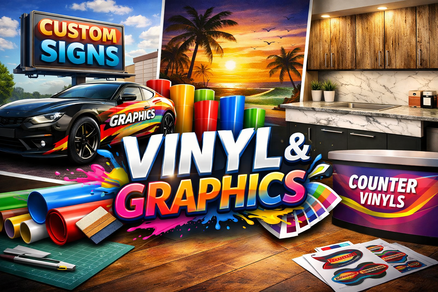 From signage and decals to wall art, vehicle branding, cupboard wraps,